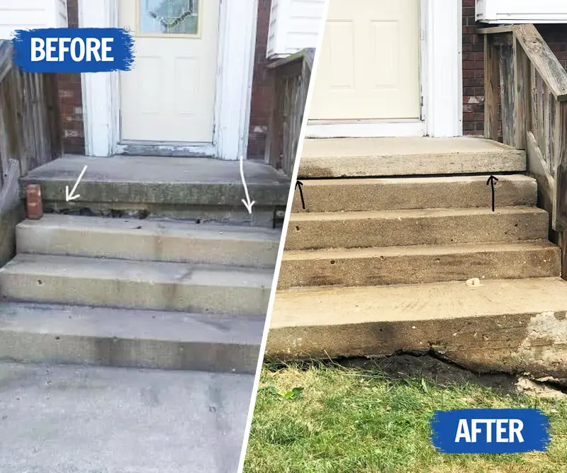 Lift sunken steps to restore safe and even access to your home.